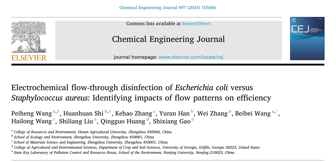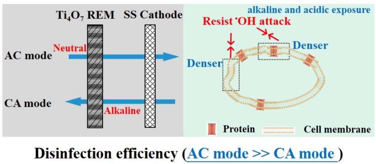 环境中的耐药菌和抗生素污染问题引起了全球关注,耐药菌及病毒仍是公众健康的主要威胁,水体则是耐药菌在环境中传播的主要媒介。基于Ti4O7孔状电极的反应性电化学膜(REM)能够有效增大污染物的相间传质速率和电活化表面积,在污染物去除和耐药菌灭活方面表现出优良特性。然而,其消毒、防污机理尚不清楚。另外,耐药菌包括革兰氏阳性菌(G +)和革兰氏阴性菌(G - )两类,其细胞壁结构和组成存在显著差异。在电化学氧化中,不同水力条件及细胞膜表面不同的组成引起的细胞失活机制差异尚不清楚。本研究发现流动模式决定了Escherichia coli(大肠杆菌)和Staphylococcus aureus (金黄色葡萄球菌)的失活效率。具体而言,阳极-阴极(AC)流模式下,E. coli和S. aureus的失活率分别为5.22和5.47 log,而在阴极-阳极(CA)流模式下,失活率下降到小于1 log。进一步研究发现,阳极电化学氧化反应前的耐药菌暴露的酸碱度决定耐药菌杀菌效率,即中性条件下E. coli和S. aureus能被完全灭活,而在酸性和碱性条件下耐药菌的灭活效率极低。E. coli和S. aureus失活效率的差异也受水力条件下和细胞壁结构的影响,官能团模型和分子动力学模拟表明,细胞结构特别是膜蛋白复合物在碱性和酸性环境下的致密变化抵抗了电氧化对膜结构的攻击。该研究为单次过滤高效处理耐药菌抗性提供了新方法,对控制耐药菌抗性传播具有重要的理论和应用价值。研究成果以 “Electrochemical flow-through disinfection of Escherichia coli versus Staphylococcus aureus: Identifying impacts of flow patterns on efficiency” 为题,发表在Chemical Engineering Journal(2024, 497: 155680)。91国产