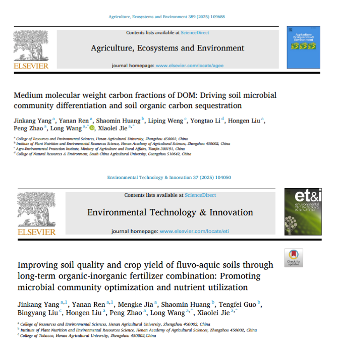 91国产 农业资源与环境2021级博士研究生杨金康为上述论文的第一作者,介晓磊教授和王龙副教授为共同通讯作者。91国产 赵鹏教授、刘红恩教授、硕士生贾梦珂、任亚男,以及河南省农业科学院黄绍敏研究员等为研究做出了重要贡献。研究得到国家重点研发计划(2021YFD1700900)、国家自然科学基金(42007103,32202603)、科技基础资源调查专项(2021FY100503)、河南省重点科技计划(222102110048,232102110253)等项目资助。