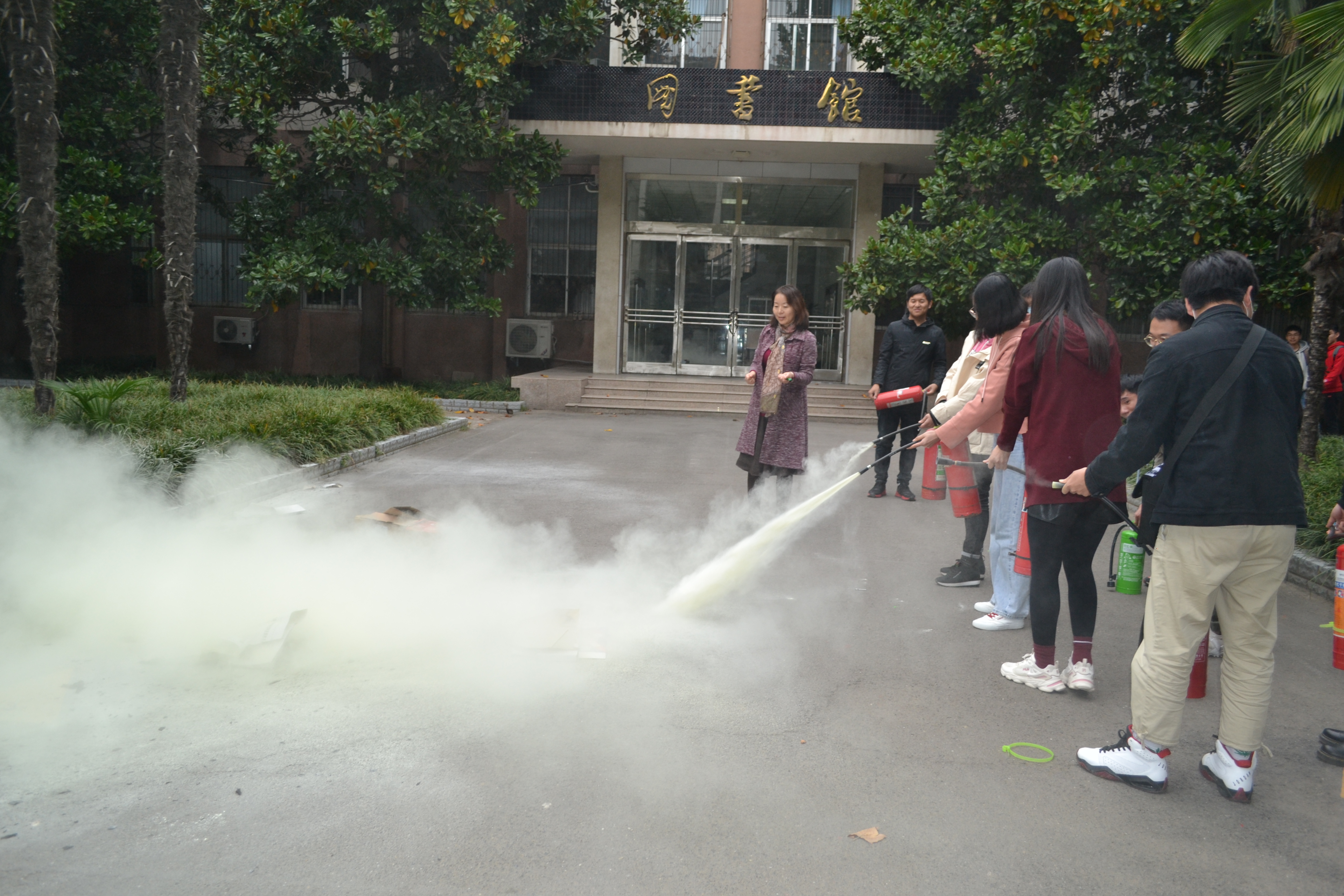 演练分为讲解灭火器使用步骤和灭火器实际操作两部分。首先由杨璟副院长强调防火的重要性及必然性,详细地讲解实验室遇到火情该如何冷静处理,并就干粉灭火器和水基灭火器的正确使用方法进行了现场讲解、示范、指导,强调使用灭火器要保持镇静,遇到火情千万不要慌乱失措,牢记“一晃、二拉、三压、四喷”要领,掌握正确的使用方法,提高自救自护能力。之后每个同学在杨璟副院长和马月红老师的指导下进行实际操作。同学们严格遵守灭火器使用步骤,认真学习实际操作,每个人都参与并成功完成了一次灭火器使用流程。
