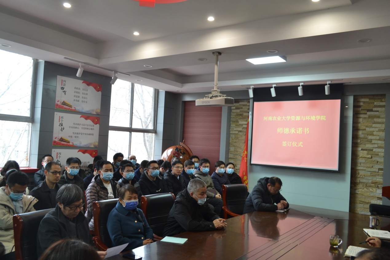 全体教职工于18号楼会议室举办师德承诺书签约仪式。会议由学院副院长刘世亮主持,全体教职工参加。