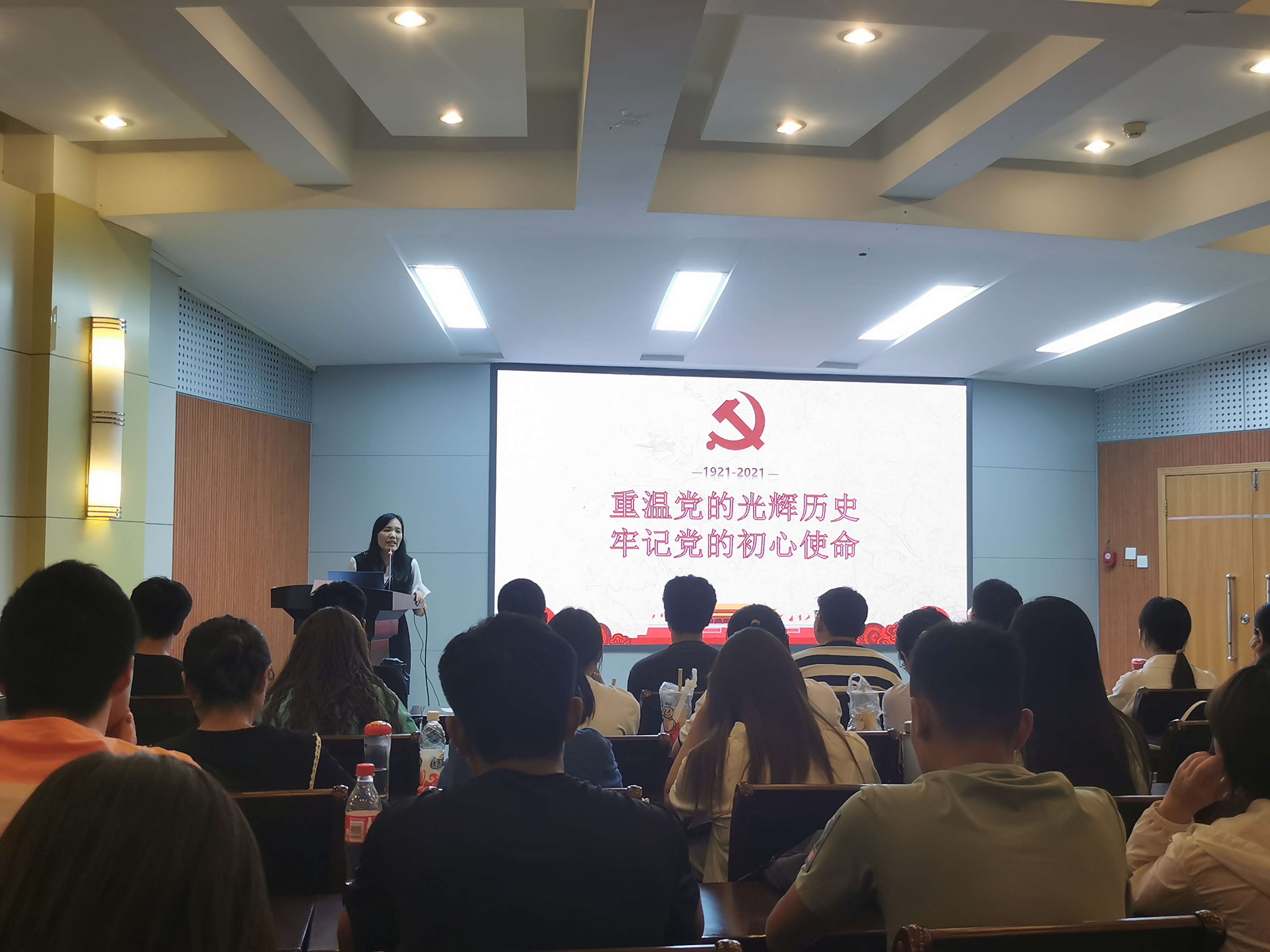 党委副书记陈景红在文化路校区第三报告厅为2018、2019级学生党员讲授“重温党的光辉历史,牢记党的初心使命”主题党课。
