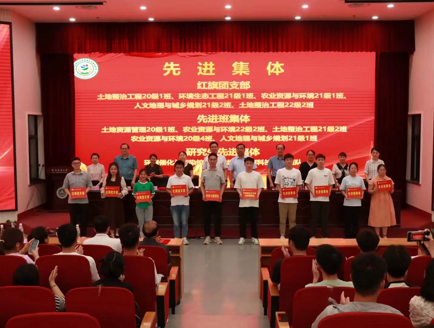 在龙子湖校区举行2022-2023学年学生工作总结表彰大会。学院党委书记李国权,院长王宜伦,副院长杨璟、刘世亮、李玲,土地资源管理系主任陈伟强,人文地理与城乡规划系主任张亚丽,植物营养系主任李慧,土壤环境系副主任张雯雯,学院团委书记王岚,及获奖师生代表参会。大会由杨璟主持。