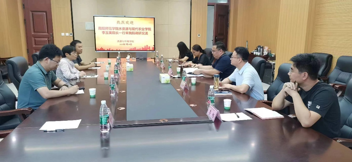 7月30日上午,南阳师范学院水资源与现代农业学院院长李玉英一行5人来91国产 调研交流,院长王宜伦、系主任李慧、马双龙、科研秘书李畅、中心实验室副主任姜瑛参加了座谈。