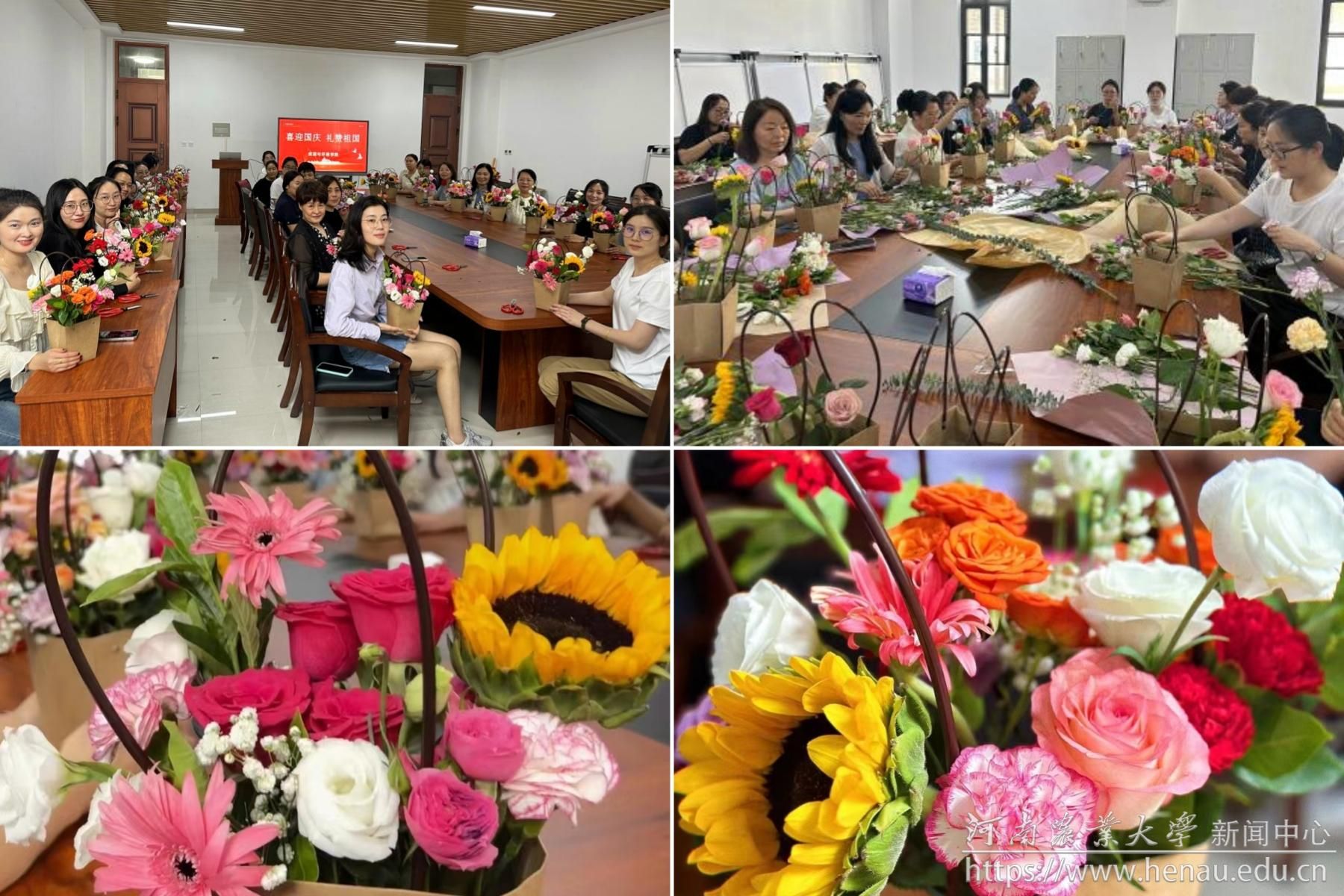 一束鲜花,向祖国告白,一颗红心,献给祖国。此次活动通过手工花篮作品的形式,为新中国成立75周年献上一份特殊的礼物,进一步激励了学院全体教职工厚植爱国情怀,砥砺强国之志,力践报国之行,深化落实立德树人使命,为实现中华民族伟大复兴不断奋发努力。