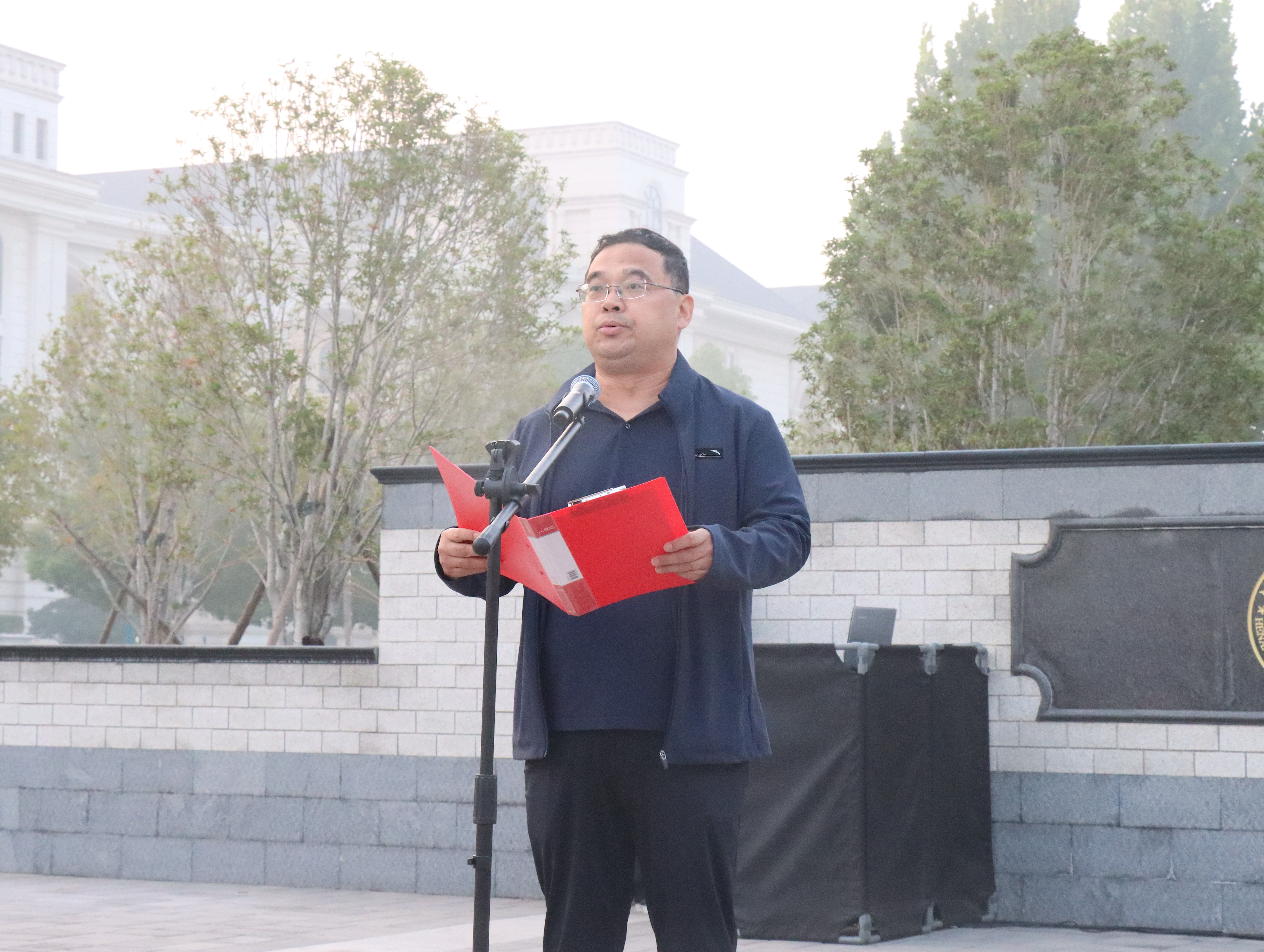 仪式开始,在嘹亮的国歌中,全体师生肃立,注视着五星红旗冉冉升起。国旗下,院长王宜伦进行主题讲话,勉励广大学子生逢盛世、肩负重任,要努力在涵养大情怀、拓展大视野、锤炼硬本领的过程中,为中国式现代化建设贡献青春力量。第七期青马班学员深情朗诵《大写的中国》,饱含深情地表达了对伟大祖国的热爱与祝福。