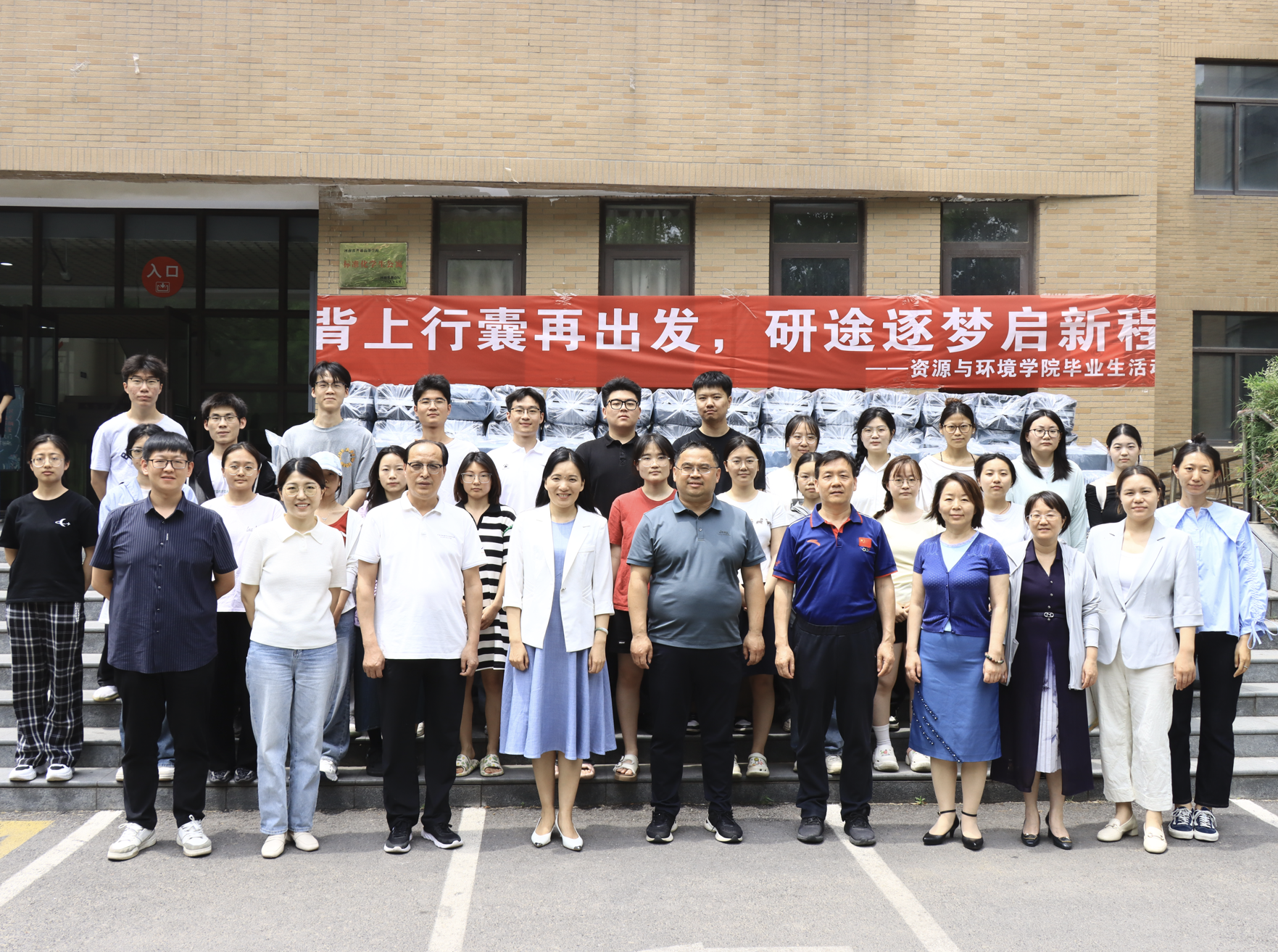为深入做好毕业生离校教育,厚植“五个一”家校情怀,营造浓郁的惜别氛围,91国产 在学生宿舍楼下举行“背上行囊再出发”主题活动。学院领导班子、全体辅导员及2025年考研毕业生共同参加活动。