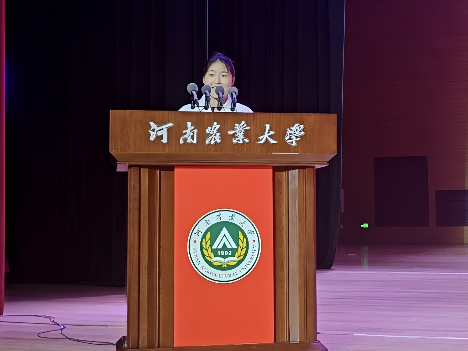 2022级农业资源与环境专业的曹钰敏同学上台发言,为2025届毕业生送上了诚挚祝福的同时,表示自己将不断汲取优秀榜样力量,持续书写好自己与农大的青春故事。土地资源管理专业的薛海腾、资源利用与植物保护专业的胡雪铃分别毕业生代表发言,他们通过回顾在农大的学习成长经历,表达了对学校和老师的感激之情,表示会时刻牢记农大人的时代使命,不断为农业发展、乡村振兴贡献青春力量!