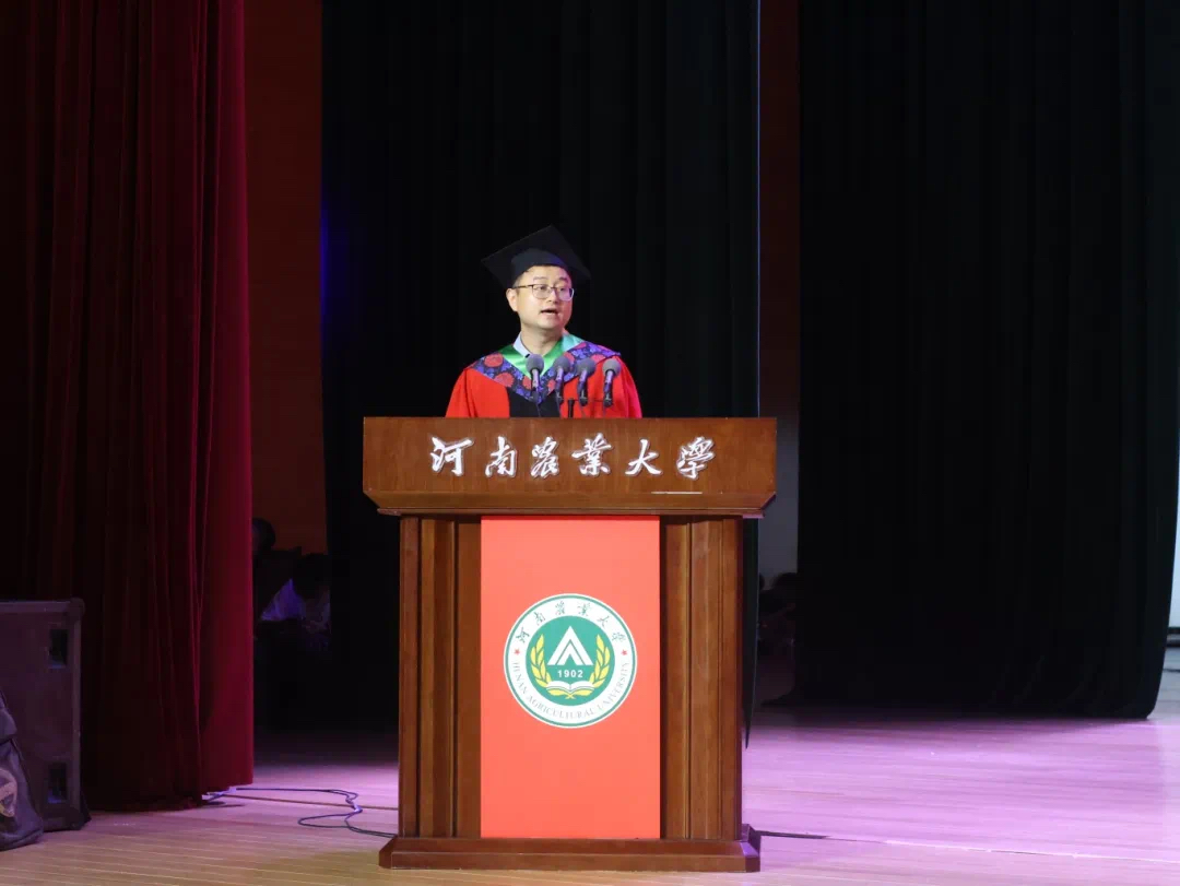 教师代表马双龙老师寄语全体毕业生,在顺境中居安思危、在逆境中不言放弃、将家校情怀铭记于心,希望大家能够在更广阔的天地里活成农大的样子:扎根泥土、心向阳光、势不可挡!