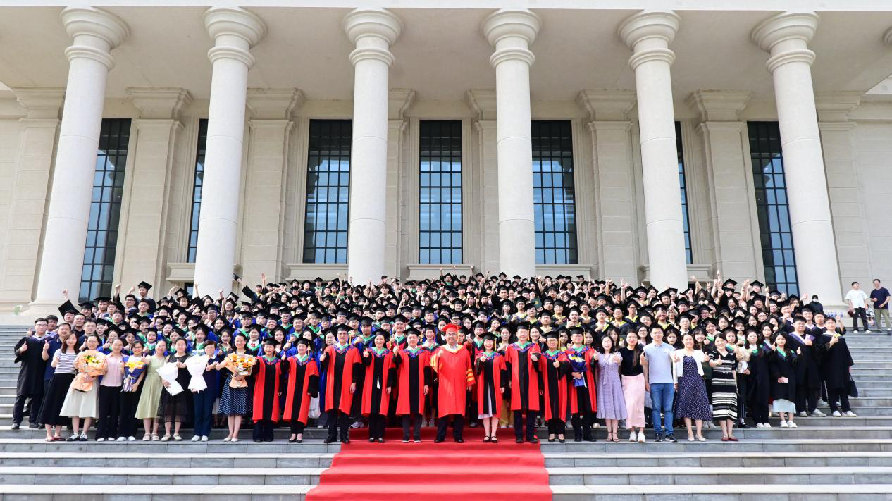学位授予仪式环节,王院长依次为博士、硕士毕业生拨正流苏,并颁发学位证书。