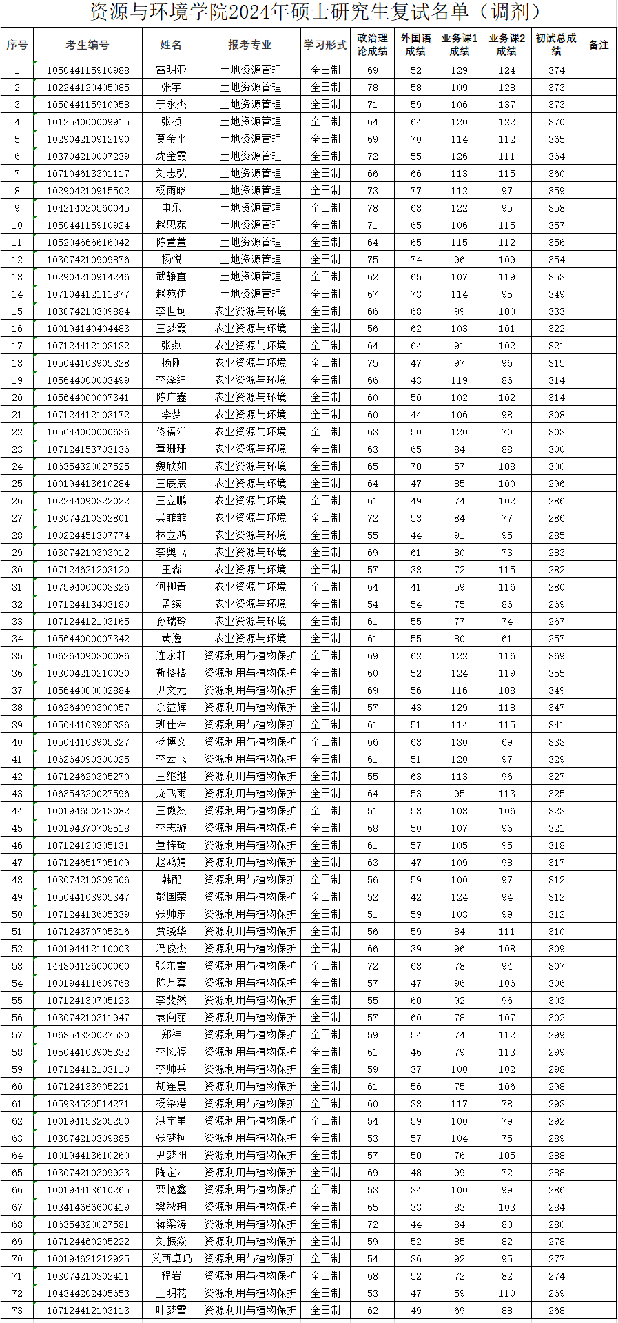 91国产 2024年硕士研究生复试名单(调剂)