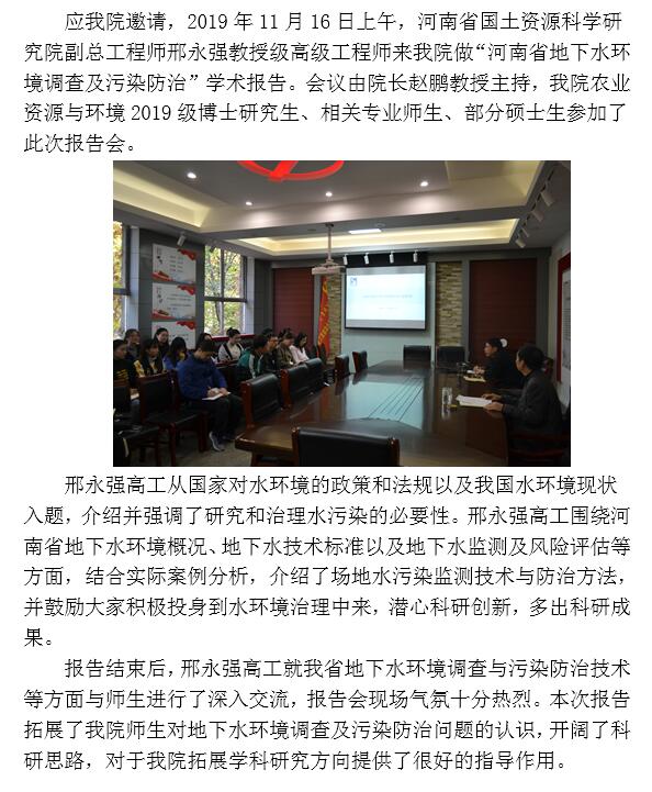 河南省国土资源科学研究院邢永强高工来91国产 做学术报告
