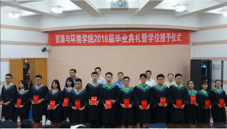 2018届本科优秀毕业生的决定》,并对优秀毕业生代表进行了表彰。资环14-4班杨家伟作为毕业生代表发言,他深情回忆了大学四年的点滴生活,在即将分别的时刻,她代表全体毕业生向各位辛勤付出的领导老师表达最衷心的感谢;地城16-3班曹盼盼作为在校生代表发言,祝贺学长学姐顺利毕业,在今后的学习生活中继续传承农大精神,努力追逐梦想;教师代表刘世亮老师表达了对毕业生的依依不舍之情,字里行间表达了对全体毕业生的殷切期望与祝愿,希望大家在未来取得更加辉煌的成绩,时刻心怀梦想,保持真挚的人格并不断完善自我。最后,院长赵鹏在毕业典礼上致辞,代表学院向圆满完成学业的2018届全体毕业生表示热烈的祝贺,并对资环学院的毕业生提出了希望。“一朝资环人,永远资环人”,希望资环学院的牵挂陪伴着同学们走遍海角天涯,学院永远是同学们人生旅途的港湾、坚强的后盾、温暖的家。临别在即,他衷心祝愿毕业生一帆风顺、前程似锦。