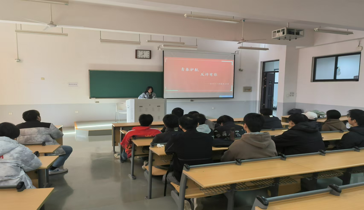 期间,学院团委副书记黄春萌为2024级全体学生主讲“反诈一节课”,通过讲解大学生群体中常见被骗案例,提醒同学们不要轻信陌生来电和短信,不向陌生人透露自己的身份证号、验证码等重要信息,不浏览非法网站或点击不明链接,不贪小便宜,不心存侥幸,不让不法分子有机可乘。