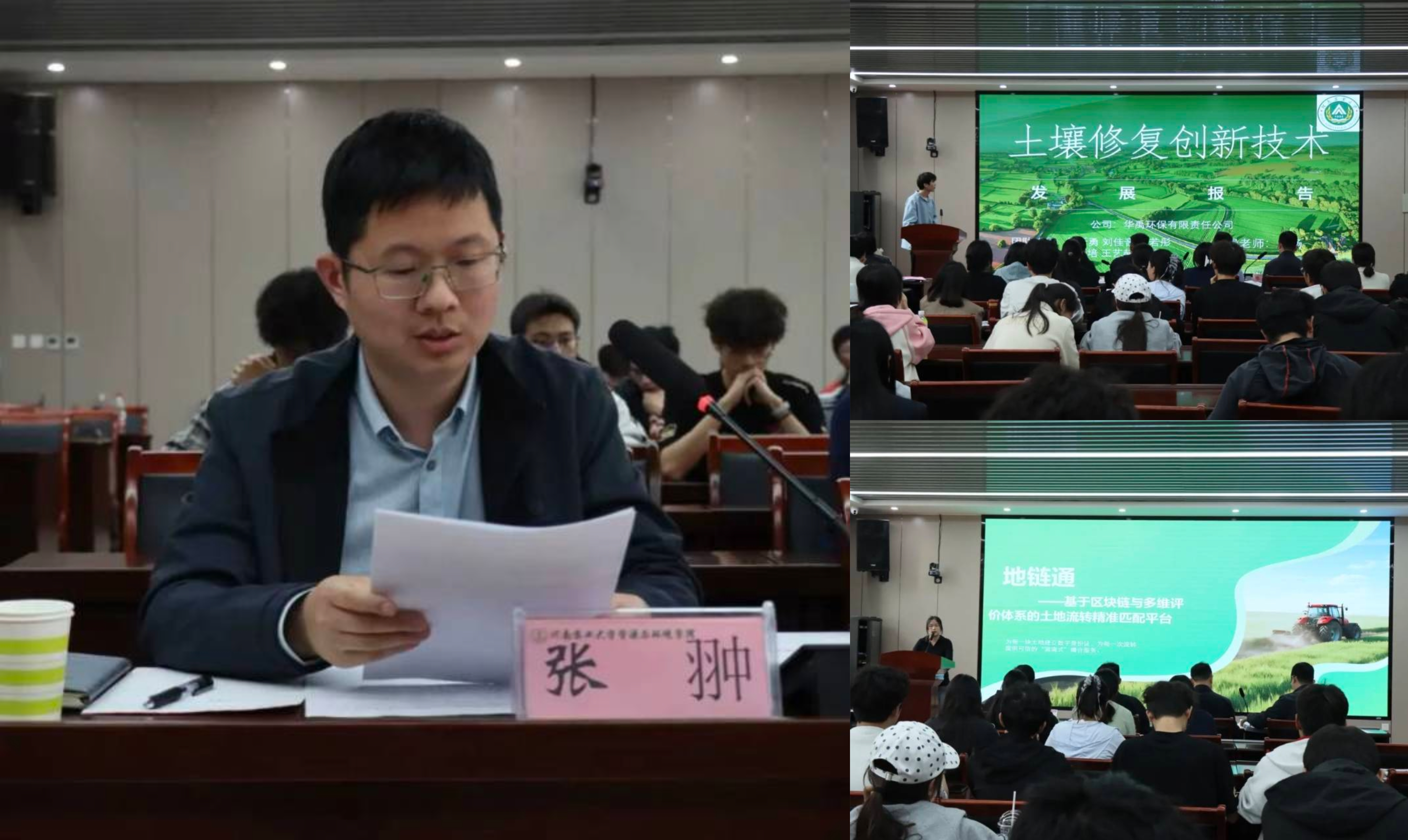 比赛期间,12支参赛团队负责人依次上台汇报,通过PPT演示、视频讲解等形式,从项目背景、技术创新、市场前景及社会效益等方面,对项目进行了全面汇报。