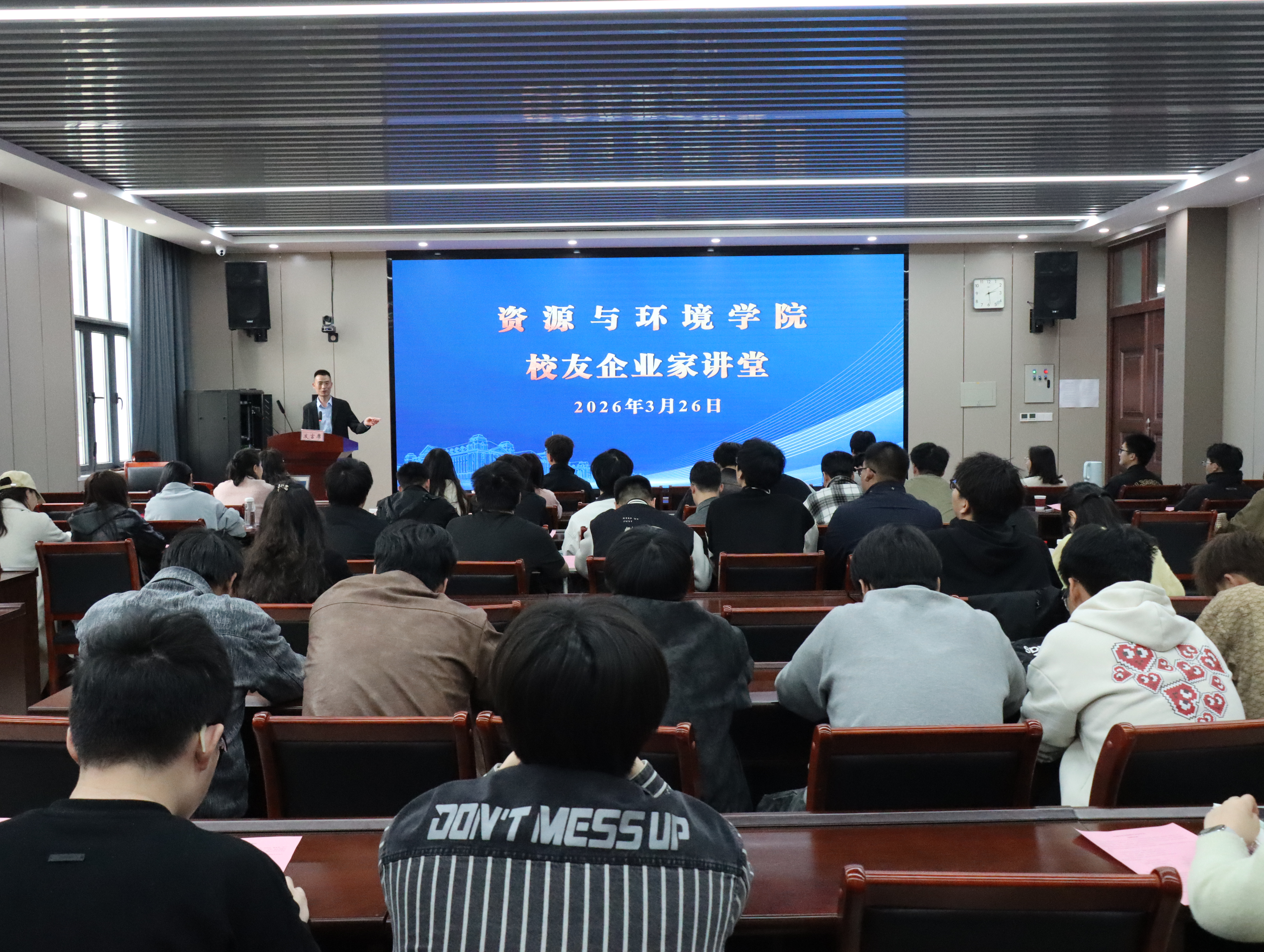 举行校友企业家大讲堂活动。永城市民乐种植专业合作社理事长冯雷受邀返校,以“现代农业与乡村振兴”为主题分享自身创业历程,并同步开展专场招聘。