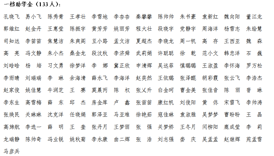 名同学获得2017-2018学年国家助学金,现予以公示,公示期为