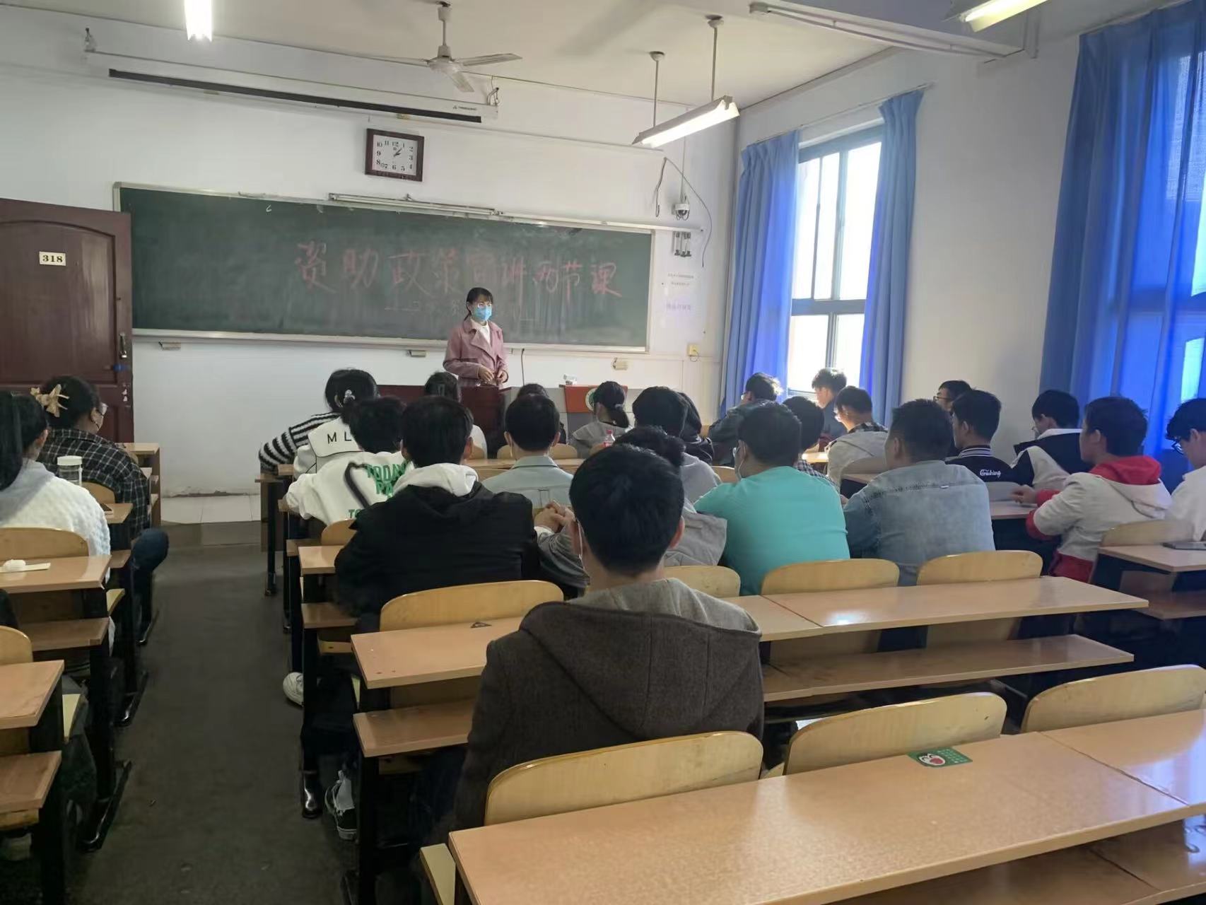 此次活动以主题班会的形式进行。首先,各班班主任围绕资助范围、资助标准、申请条件、评审与发放等几方面内容进行讲解,帮助同学们了解高校家庭经济困难学生资助政策体系。接着,班主任老师与班级学生进行互动,耐心解答学生对资助政策的疑问与和困惑,并引导符合条件的学生申请相关资助项目。最后,老师们借此对同学们开展诚信教育和感恩教育,鼓励家庭经济困难的学生勤奋学习,努力成为堪当民族复兴大任的时代新人。