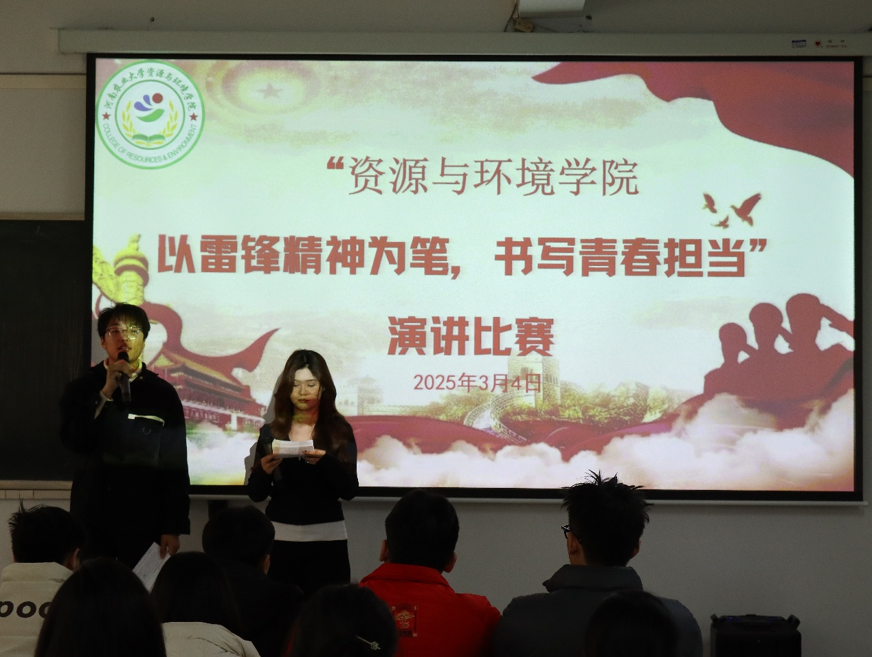 为贯彻习近平总书记关于学雷锋活动的重要指示,弘扬奉献、友爱、互助、进步的志愿精神,91国产 于3月4日在桃李园校区桃西楼302、303教室举办“以雷锋精神为笔,书写青春担当”演讲比赛。由院学生会成员担任评委,2024级学生参与。