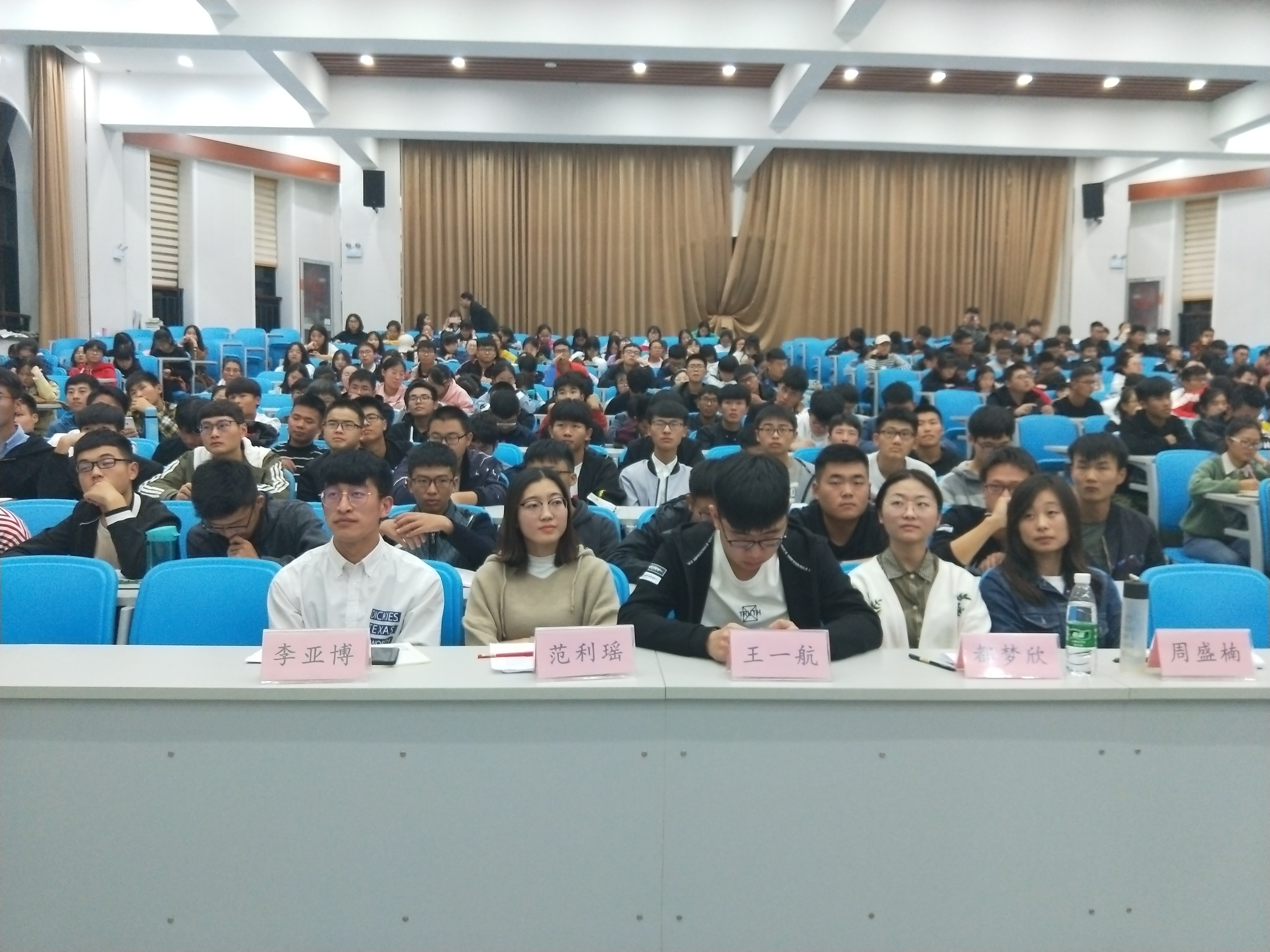 2017-2018年度十位大学生标兵主讲,新生辅导员蔡恩香老师主持,18级全体学生出席本次会议。