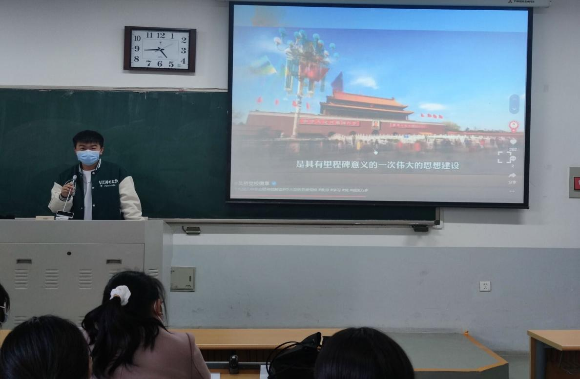 青年学子深刻理解党代会中强调的“征途漫漫,唯有奋斗”的会议精神;部分支部组织团员重温入团誓词,让同学们更加明确共青团员的时代责任和历史使命;也有部分团支部通过学习主题团课的活动方式,让同学们将党的百年奋斗目标与自身实践相结合,用自身努力谱写属于自己的青春篇章。